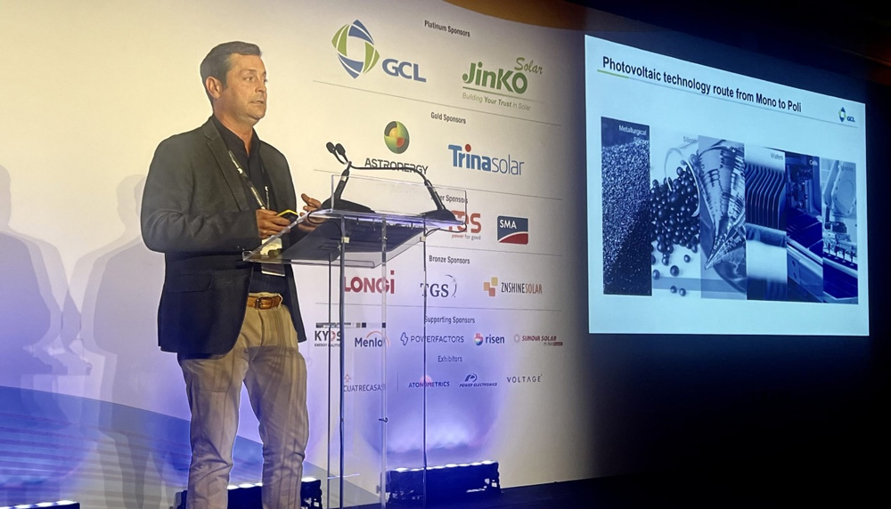 Vitor Rodrigues, directeur technique pour l'Ibérie et l'Amérique latine chez GCL SI, a fait une présentation convaincante sur les avancées technologiques, la traçabilité et la fabrication décarbonée. Vitor a expliqué en détail comment GCL SI garantit la fiabilité des modules à grande échelle grâce à l'optimisation des matériaux et de la conception structurelle. En outre, Vitor a donné un aperçu des technologies cellulaires dans le secteur photovoltaïque qui devraient devenir courantes dans les années à venir.